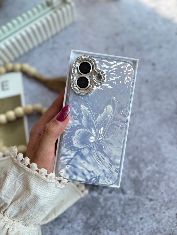ترکیب خاص رنگ مرواریدی با طراحی برجسته پروانه، بههمراه محافظ لنز قلبیشکل نگیندار، این قاب را به یک اکسسوری خاص برای آیفون شما تبدیل کرده است.