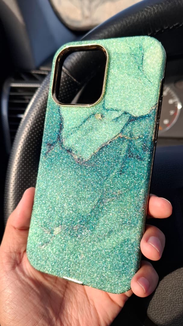 قاب لاکچری آیفون Emerald Marble | طراحی مرمری سبز براق + فریم طلایی دوربین