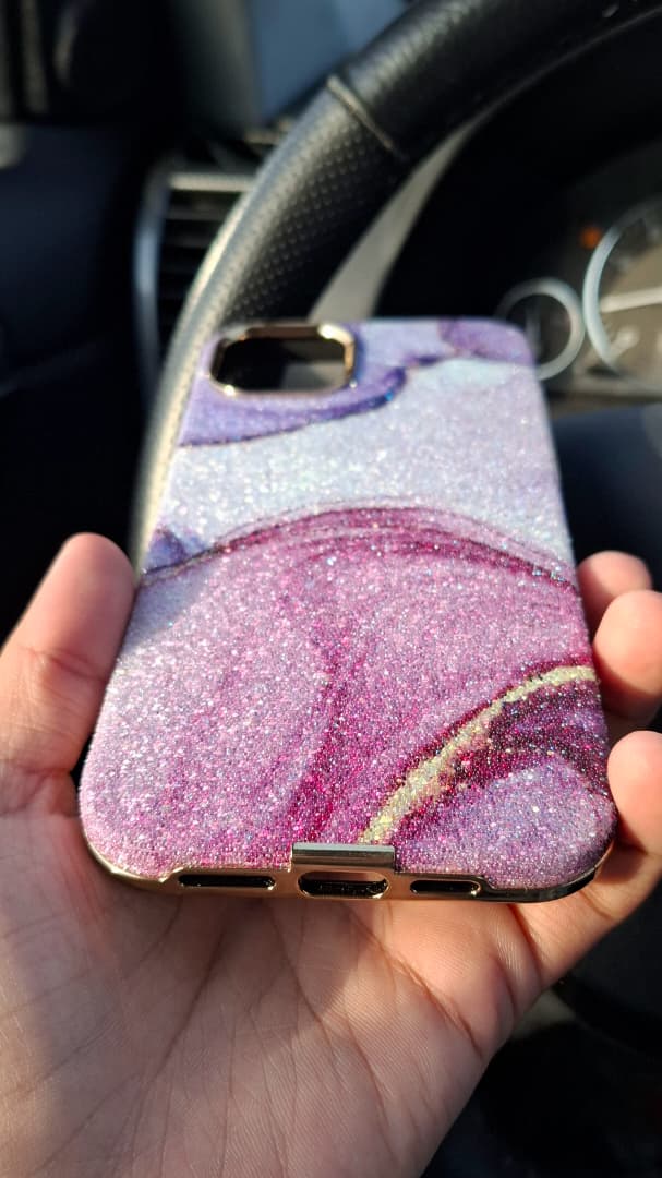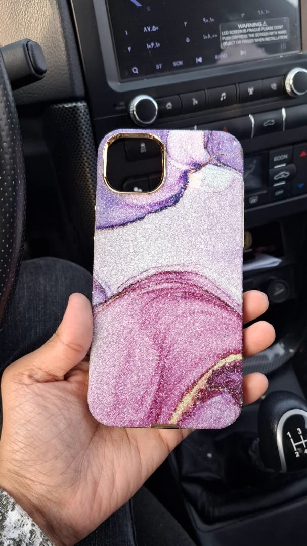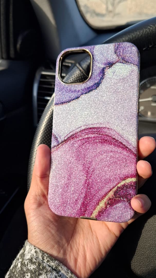 قاب لاکچری آیفون Purple Marble Shine | طرح مرمری براق چندرنگ + فریم طلایی دوربین