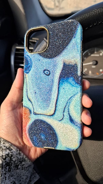 قاب لاکچری آیفون Galaxy Marble Shine | طراحی مرمری کهکشانی + فریم طلایی