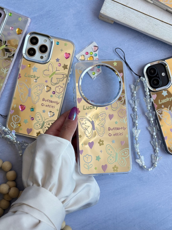 قاب پروانهای آینهای همراه با آویز مرواریدی، علاوه بر محافظت کامل از گوشی، جلوهای خاص و شیک به استایل شما میدهد. مناسب برای کسانی که عاشق قابهای فانتزی و خاص هستند.