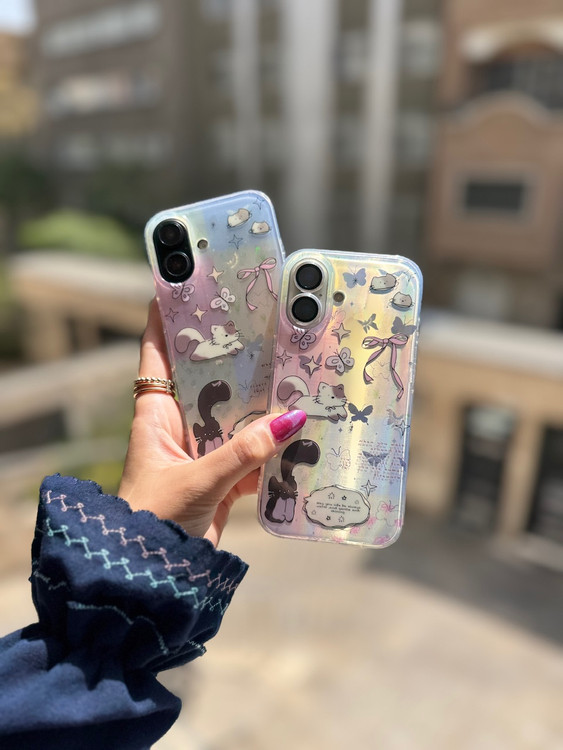 جنس: TPU منعطف شفاف + لایه براق رنگینکمانی
