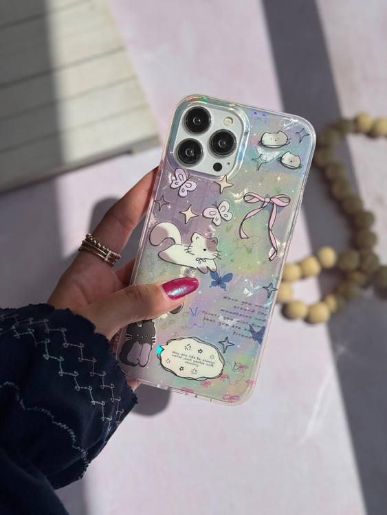 با قاب Dream Cat گوشی آیفون خود را به شکلی خاص و متفاوت محافظت کنید. طراحی گربههای فانتزی با افکت رنگینکمانی براق، سبک و مقاوم در برابر ضربه و خط و خش.