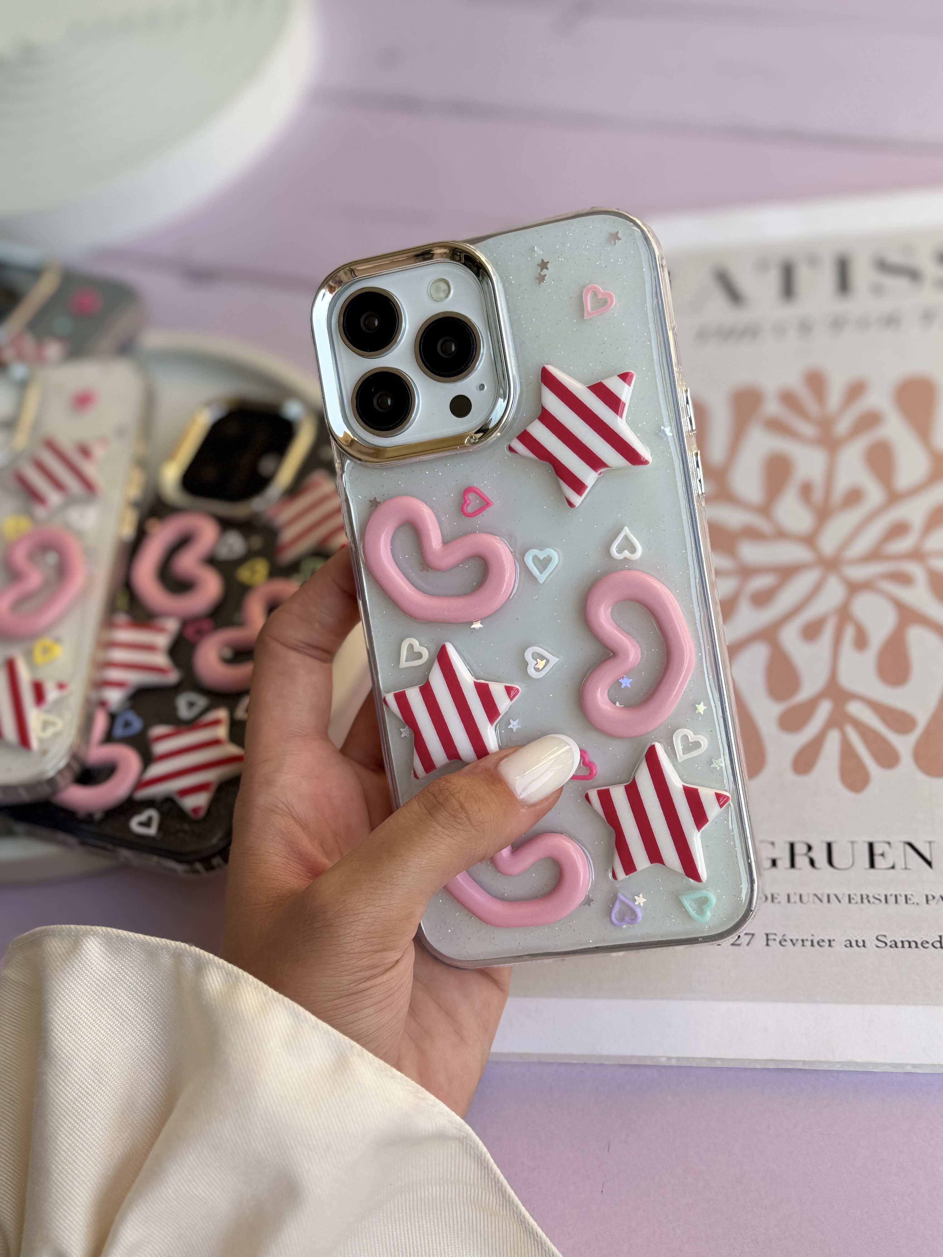 با قاب قلب و ستاره برجسته آبنباتی، گوشی آیفون خود را هم محافظت کنید و هم استایلی شاد و خاص داشته باشید. مقاوم، سبک و براق.
