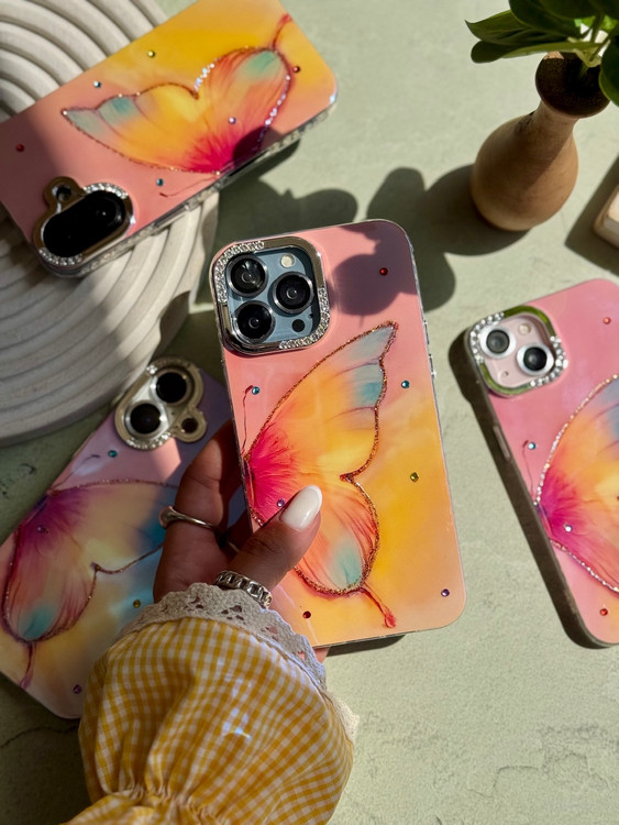 با قاب پروانه بزرگ رنگینکمانی، گوشی آیفون خود را هم محافظت کنید و هم جلوهای خاص و لاکچری به آن بدهید. طراحی براق، سبک و مقاوم.