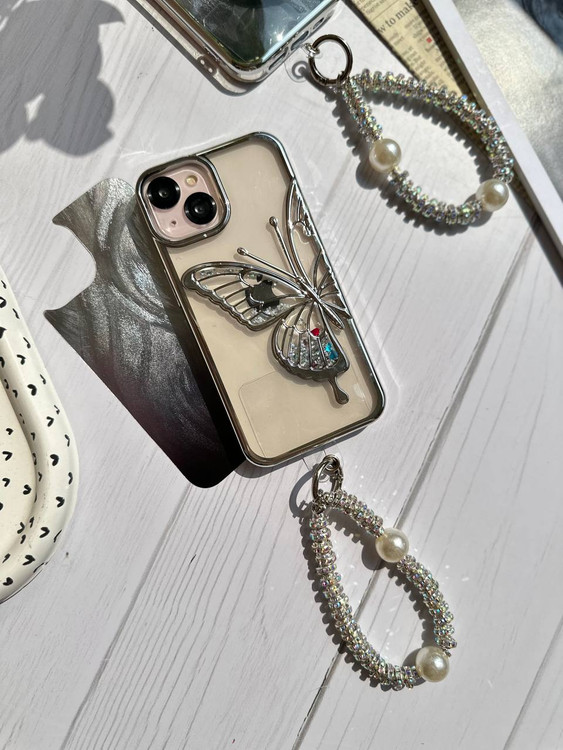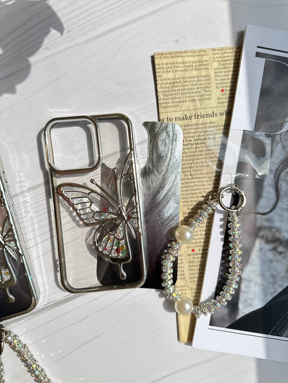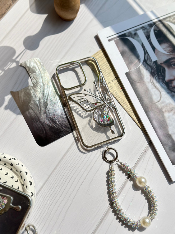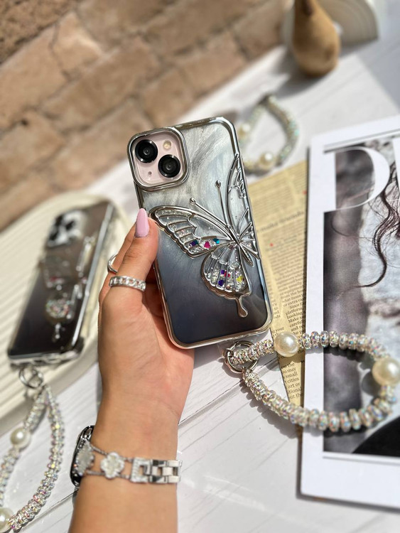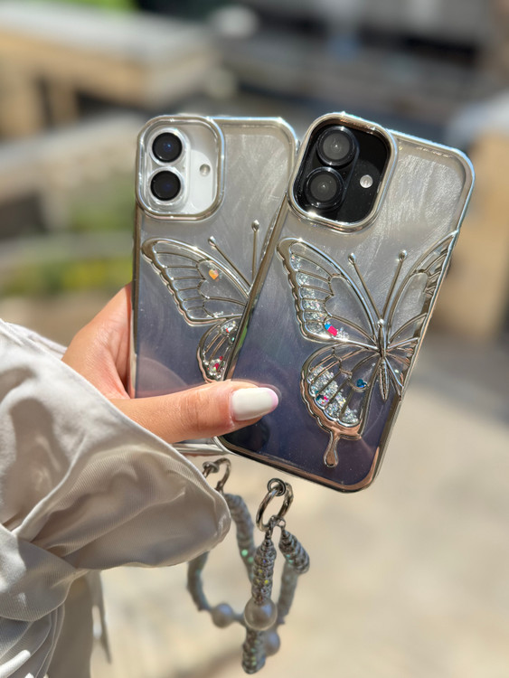 قاب پروانه برجسته طرح آکواریومی همراه با آویز و ورق براش مناسب آیفون