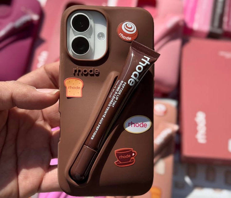 قاب گوشی فانتزی مدل Rhode رنگ اسپرسو همراه با لیپ بالم – پک دخترانه خاص مناسب برای آیفون