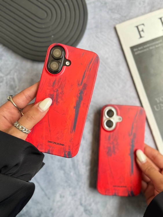 قاب گوشی با طراحی نقاشیوار به رنگ قرمز و مشکی، الهامگرفته از سبک انتزاعی، مناسب برای افراد با استایل جسور و متفاوت. محافظتی قوی در کنار جلوهای هنری و خاص.
