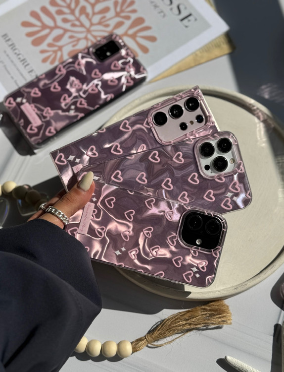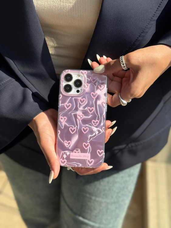 قاب گوشی با زمینهی مات براق و موجدار و طرح قلبهای صورتی برجسته. طراحی خاص و فانتزی، مناسب برای دختران خاصپسند. مقاوم، سبک و ایدهآل برای استایلهای شیک و عاشقانه.